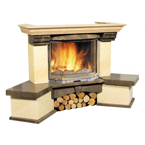 Изящную каминную облицовку Bella Italia Capri отличает лаконичная геометрия портала, исполняемого в пристенном и угловом вариантах. Основание и пилоны выполнены из патинированного мрамора оттенка слоновой кости. В оформлении декоративных элементов и горизонтального подиума, расположенного под топкой, используется полированный мраморный камень Olive Brown. Традиционная каминная полка, венчающая конструкцию, сделана из светлых пород древесины. Классический дизайн портала с элементами кантри-стиля естественно впишется в интерьер и станет главной «изюминкой» помещения.