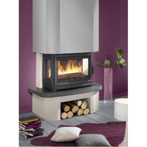 Трехсторонний камин CS47 изготовляется из камня Bretignac, Mauzens, Gard и синего камня горной породы.