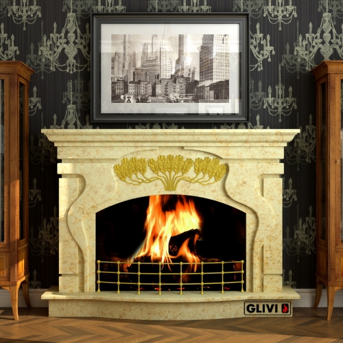 - Камин выполнен из полированного мрамора Giallo Rena; с элементами отделки латунью.