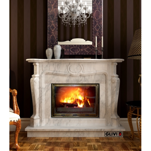 - Камин выполнен из полированного мрамора Bianco Carrara.