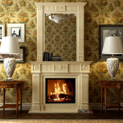 - Камин выполнен из полированного мрамора Crema Marfil.
