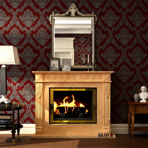 - Камин выполнен из полированного мрамора Rosa Perlino.