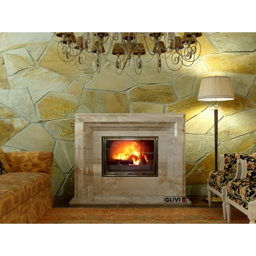 - Камин выполнен из полированного мрамора Breccia Sardo.