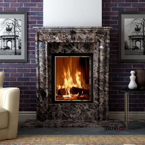 - Камин выполнен из состаренного мрамора Emperador Dark.