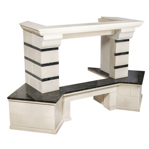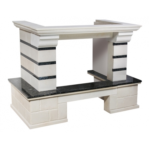 - Материал: шлифованный песчаник в форме кирпичиков, золотистый или белый цвет, полки - LabradoriteПодходящие топки шириной „700 мм” с прямым стеклом