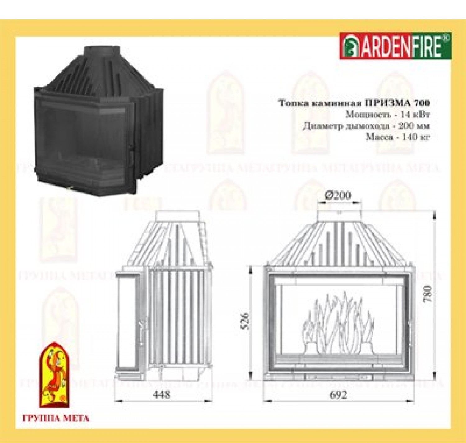 Каминная топка Мета призма 700
