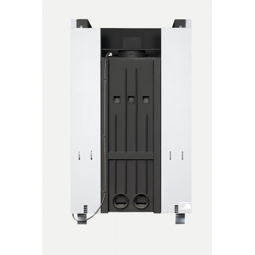 Цельносварной стальной корпус, футерованный литьевым шамотом черного цвета. Регулируемая подача первичного воздуха в камеру сгорания "Printing" по периметру стекла.