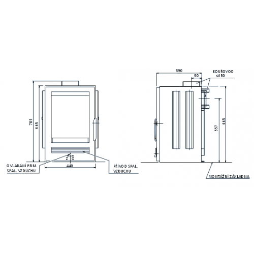 - дымоход можно подключить по выбору к выводу, расположенному сзади или сверху;