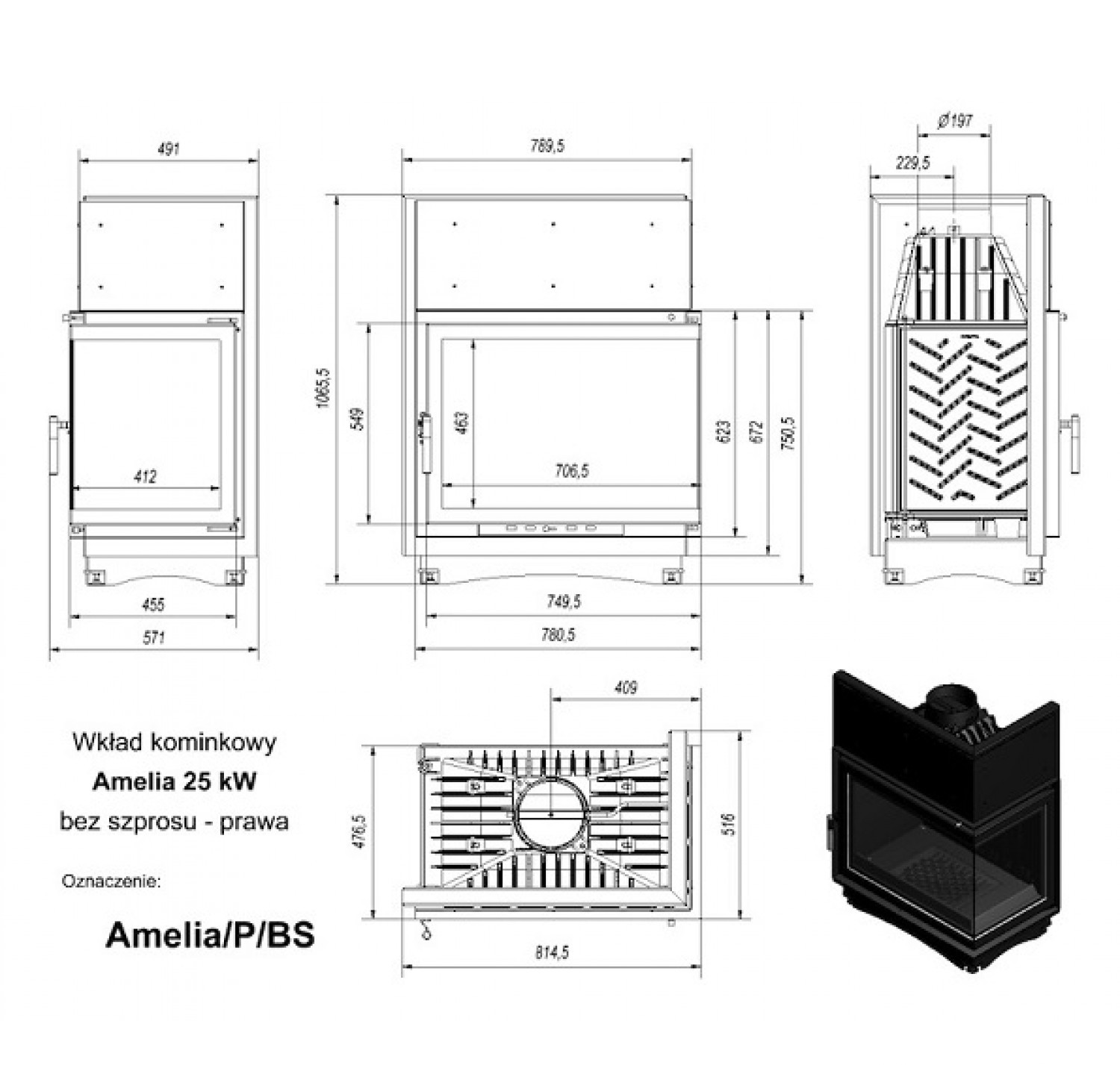 Amelia P/BS (угловое стекло справа)— топочная камера или топка-вкладыш, предназначенная для отопления дома площадью до250 кв.м. Топка большой производительности сГ-образным стеклом, который дает прекрасный обзор пламени. Все топочные камеры серии Amelia имеют систему очистки стекла отсажи, в качестве материала для стекла использована жаропрочная стеклокерамика. Особенности оборудования серии Amelia P/BS отKRATKI: Дверца сГ-образным стеклом справой стороны; Чугунная топка непрерывного сгорания; Топка высокой мощности, предназначена для больших помещений; Теплоемкость прибора увеличивают ребра повсему корпусу; Топливо— сухие дрова длиной до500 мм; Стекло— термостойкая стеклокерамика, предел нагрева 800 С; Полная герметичность дверцы; Система «двойного дожига»; Топка имеет съемную ручку надверце; Прозрачность стекла обеспечивает система встроенного обдува; Предусмотрен держатель дров— непозволяет рассыпаться при открытии дверцы; Дно топочной камеры имеет отверстие для золы.