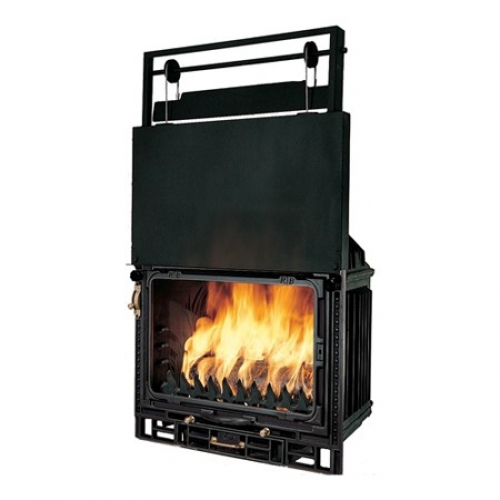 - Дверца топки открывается вверх, а также в сторону для прочистки стекла.