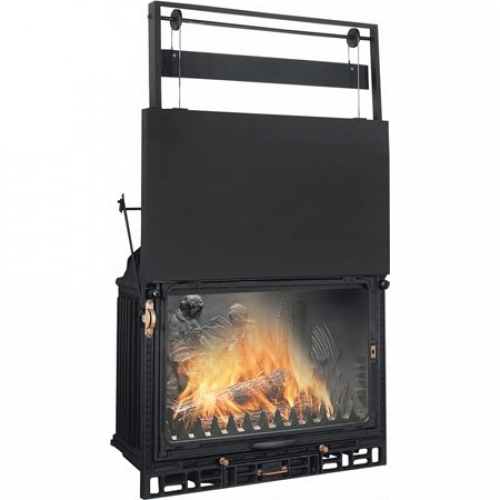 - Дверца топки открывается вверх, а также в сторону для прочистки стекла.