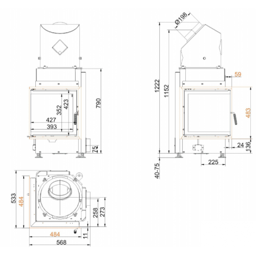 Каминная топка Brunner Eck-Kamine 42/42/42 горизонтальное открытие (без подъема)