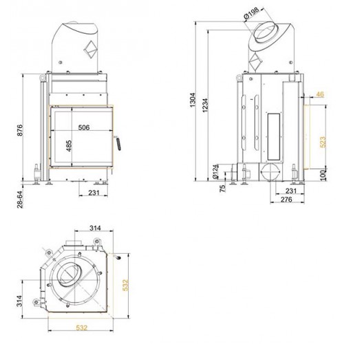 - "легкое поднятие" - при открывании дверца сначала делает небольшое движение от рамы, после чего легко скользит вверх. При закрытии дверца скользит вниз и перед самым закрытием двигается в сторону рамы и плотно прилегает к ней. Эта уникальная система предотвращает преждевременное изнашивание уплотнительного шнура и гарантирует герметичность топки;