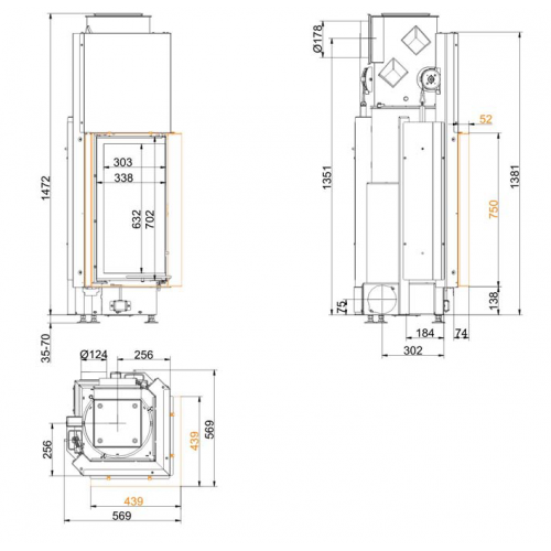 (При закрытии специальных «Тепловых штор» HeatSTOP в топочной камере сгорания сохраняется до 90% излучения. Жар камина экранирует обратно. Ваша прикаминная зона может приблизиться к очагу практически до 50 см.)