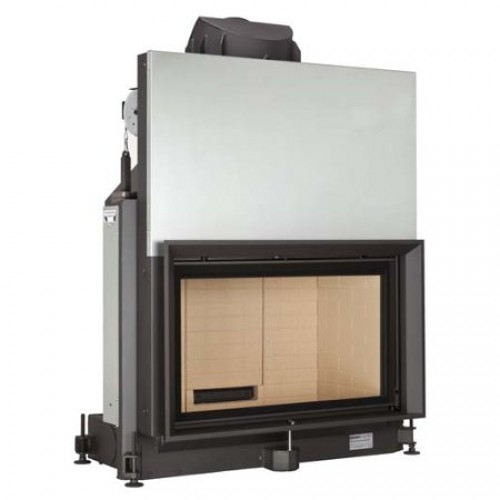 Каминная топка с прямым стеклом. Топочная камера футерована шамотом. Подъёмный механизм двери (система Easy-Lift). Ширина дверки 850 мм. Высота дверки 484 мм. Возможно подключение воздуха из-вне. В комплекте поставляется декоративная или монтажная рамка.