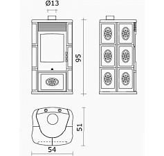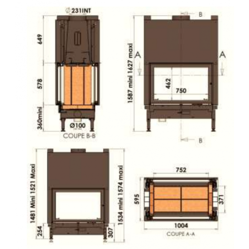 Особенности: Топка из стали с двусторонним стеклом. Дверца открывается вбок и вверх, съёмная ручка. Топка футерована шамотным камнем: чёрным или бежевым. Рамки:полированная нержавеющая сталь/золотистая/чёрная матовая Подключение воздуха снаружи. Вентиляционный набор по заказу. Оборудована Glass Protect System © : (система защиты стекла). Характеристики: Диаметр подключения O230 Общий размер (см) 100,4 x 59,5 x 162,7 Размер стекла ( мм) 544 x 838 x 4 Сажа 73 мг/Нм3 Мощность 20 кВ Эффективность (КПД) 75.3 % Уровень CO 0.15 % Вес 389 Кг Подходящие облицовки: ORSAY BIARRITZ YOKO