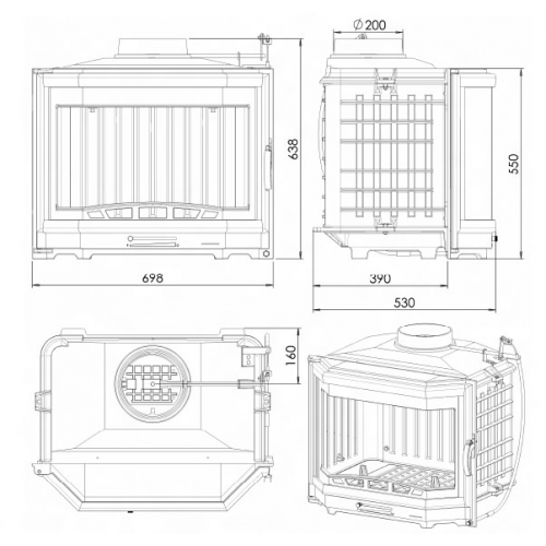 - Чугунная топка с боковым открытием двери.
