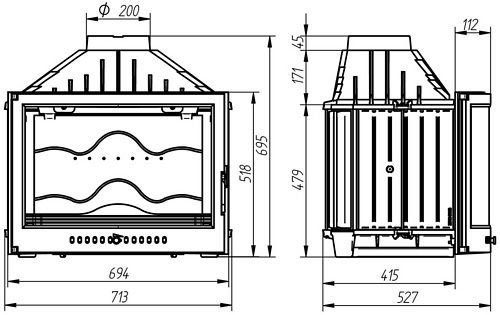 - Диаметр дымохода, мм: - 200
