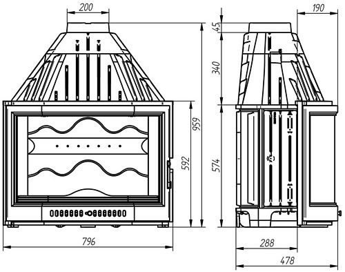 - Диаметр дымохода, мм: - 200