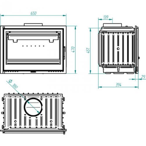 Каминная топка Ferlux C-18 Air ext с подводом горячего воздуха.