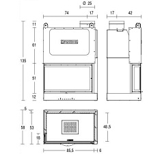 Топка Ferlux C-40 оснащена системой регулировки подачи воздуха на горение, имеет боковые дверцы и съемный зольник. Принципиальные новшества топки заключаются в возможности подачи воздуха снизу, из ножки, а также в большом просторном стекле дверцы. Корпус топки Ferlux С-40 выполнен в стильном современном серебристом цвете. Внутренний обклад сделан из прочного чугуна, что значительно повышает надежность, эффективность и срок службы каминной топки.