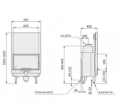 Термостойкость стекла до 800 гр Ц., в зависимости от модели топки, возможно применение двухстороннего или самоочищающегося стекла. Дымовая труба проходящая через длинный шибер для дополнительного теплого воздуха из газов - экономия на каждый день