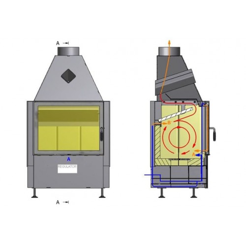 • Трехуровневая подача воздуха в топку извне — система Jet Stream - воздух поступает в топку через зольник и на стекло дверцы, образуя воздушный занавес и в дымоход топки для обогащения кислородом зоны, в которой проходит процесс догорания отходящих топочных газов.