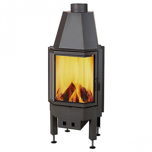 Модель топки с призматической стеклянной дверцей, открывающейся в бок. Очаг из шамота. Топка оснащена системой повторного дожига. Такая топка способна обогреть дом за достаточно короткое время.