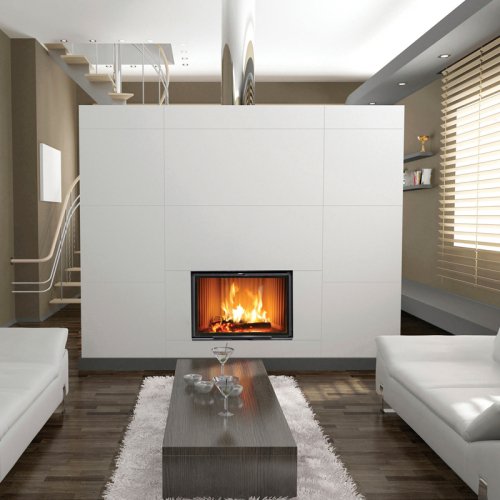 Сталь, чугун и топочная часть из шамота - органично впишется в любое пространство благодаря четким линиям и большим стеклам, дающим оптимальный обзор огня. Все модели  поставляются с цельным конвекционным кожухом и могут иметь дополнительную турбину для циркуляции воздуха. Дверки модели могут иметь высоту 460 или 600 мм.