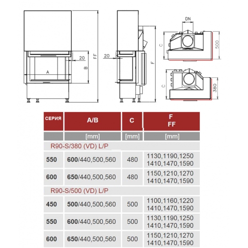 Каминная топка Kobok Corner 600 VD R90-S/500 L/P