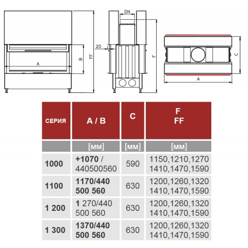 Данная модель топки оборудована двумя дверцами с бесшумным механизмом подъема.