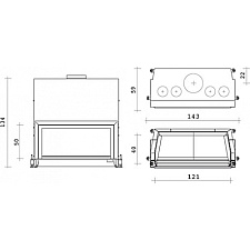 Корпус каминной топки выполнен из жаропрочной стали, колосники и патрубки из чугуна.