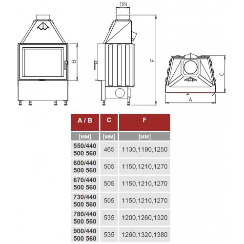 - Диаметр дымохода 200 мм