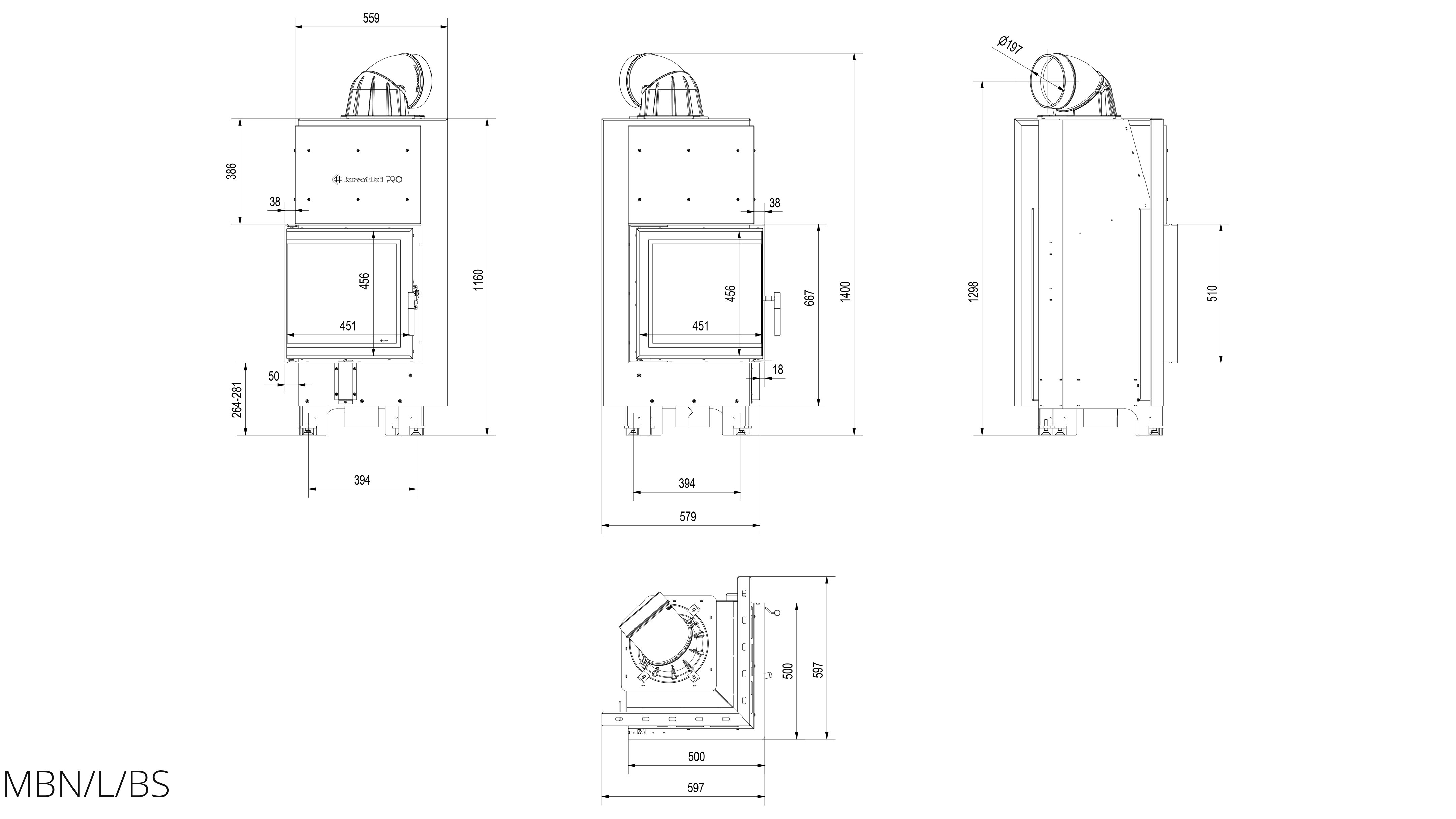 Каминная топка Kratki MBN/L/BS