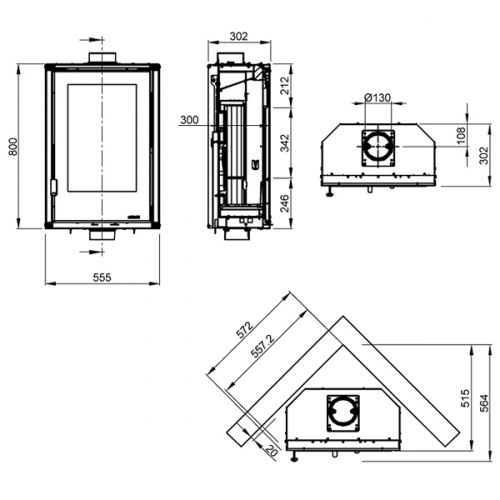 • ШхВхГ, мм.: 555x800x302
