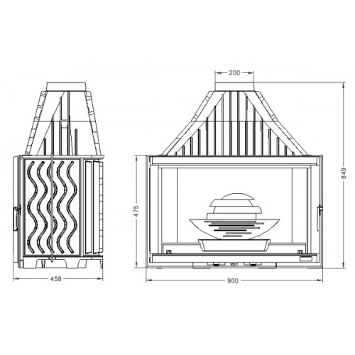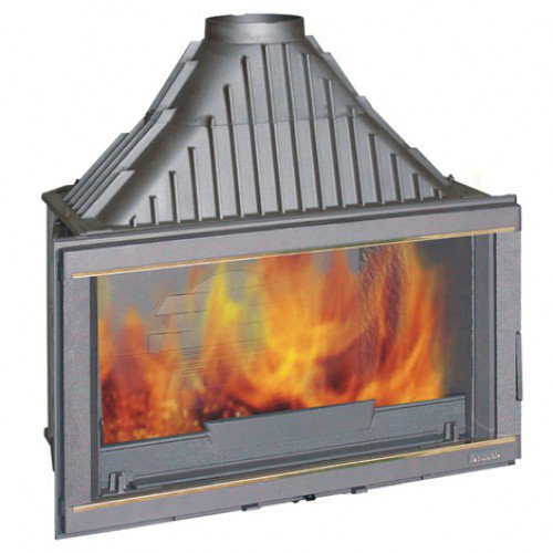 Широкоформатная чугунная топка с плоским стеклом, боковое открывание дверцы. Идеально подходит для каминов в современном исполнении.