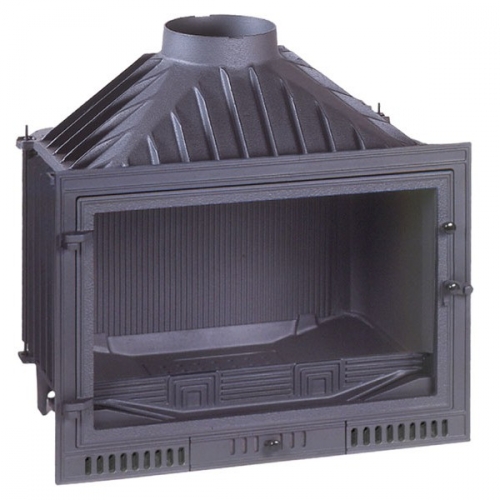 Также у данной модели топки высокий дымосборник и чугунный дефлектор. Увеличенный обзор огня дает хорошую возможность любоваться пламенем.