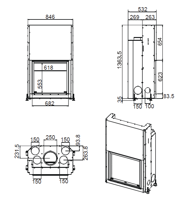 • Отсутствие нижней рамки стекла, увеличивает обзор огня.