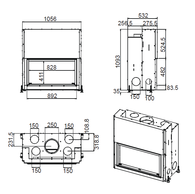 - Габаритные размеры ШxГxВ, (мм): 1056x532x1100
