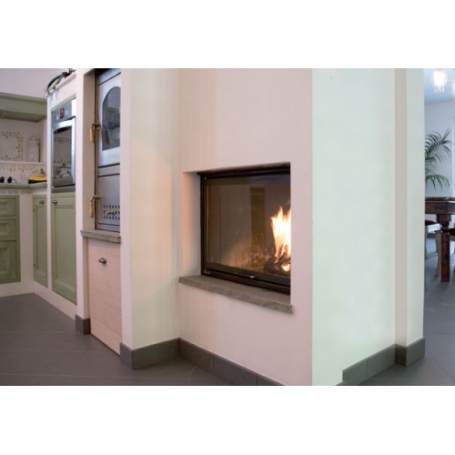 Топка, для достижения высокой тепловой мощности и длительности работы, полностью изготовлены из чугуна. Система двойного открытия, благодаря особым условиям обеспечивает доступ воздуха через закрытые стекла, а благодаря боковому открытию, упрощается чистка стекла. Вентилятор установлен в нижней части, под огнем, что обеспечивает легкий доступ к нему в случае необходимости. Блок управления управляет работой вентилятора путем регулировки расхода воздуха и рабочего режима (ручной или автоматический), и, как правило, находиться рядом с камином. Приобрести моноблок Моретти, значит стать обладателем уникальной обогревающей системы, отвечающей /самым требовательным запросам.