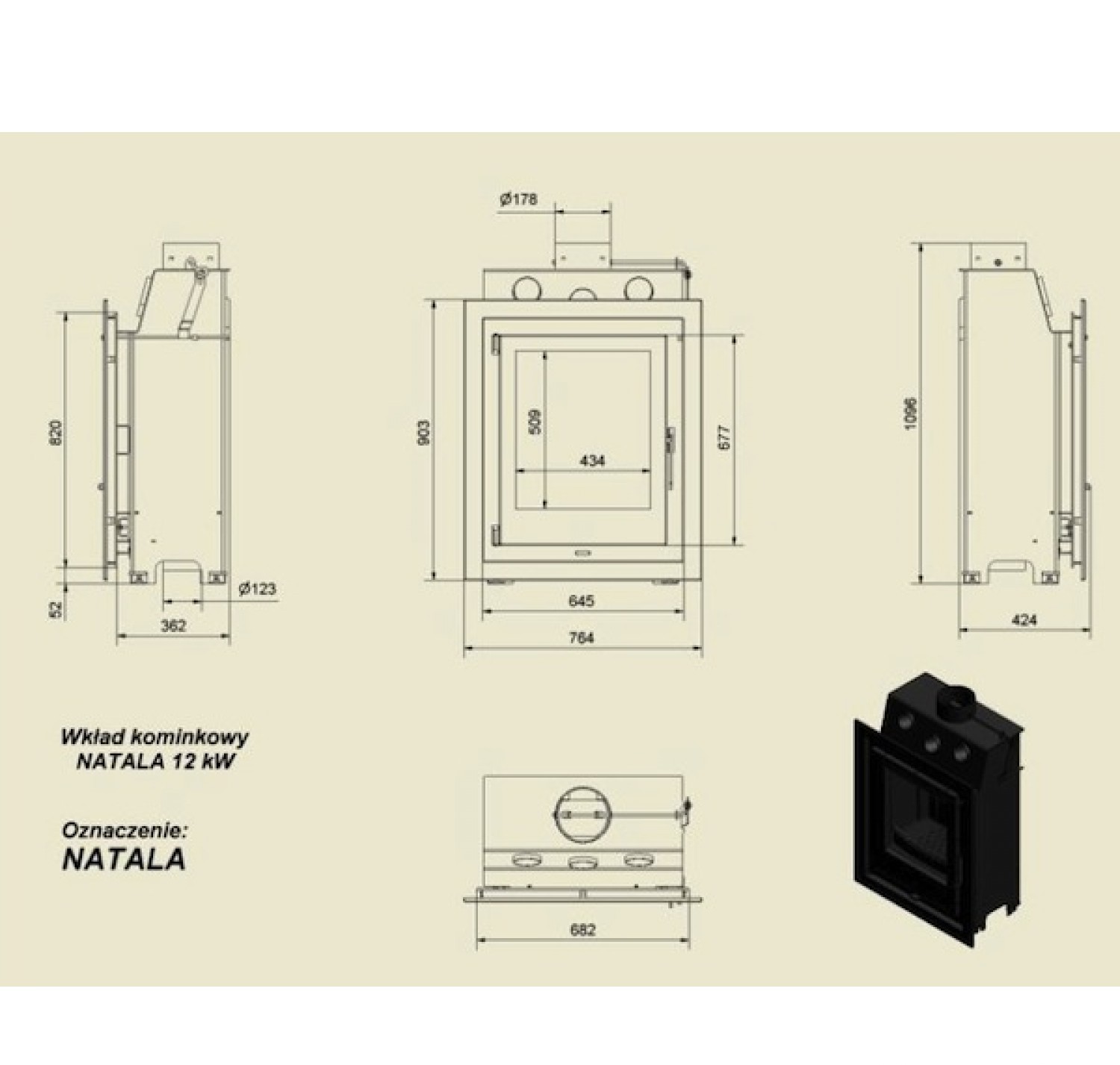 Natala GLASS (двойное стекло) отKRATKI— серия чугунных топок небольшой производительности сузким вертикальным корпусом. При производстве данной модели использовались чугун (класс 200), изкоторого сделана сама топка икотловая сталь, изкоторой сделан корпус. Особенности данной модели— это вертикальное исполнение (топка имеет размер ввысоту больше чем вширину) идвойное остекление передней панели. Дверца топки открывается вбок, для удобства открытия предусмотрена ручка. Преимущества оборудования серии Natala GLASS отKRATKI: Большая камера сгорания; Двойное остекление передней панели; Материал топки— чугун, котловая сталь толщиной 4 мм; Жаропрочное стекло передней панели, система очистки стекла; Декоративная задняя плита; Движущаяся решетка для стряхивания пепла; Удобная ручка современной формы; Наличие встроенного шибера ичугунного дефлектора; Наличие устройства для подвода воздуха в топку; Возможность регулировки подачи воздуха для горения; Предусмотрен держатель для дров; Регулируемые ножки, позволяющие облегчить выравнивание топки при установке; Длина поленьев 500 мм.