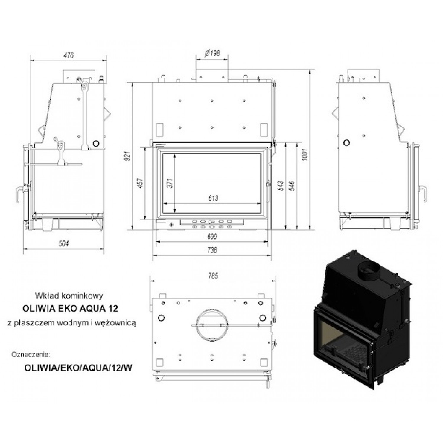 Каминная топка Oliwia/EKO/AQUA/12/W с водяным контуром
