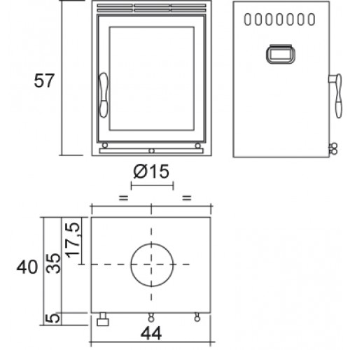 • Проем:  Дверца из эмалированной стали с жаропрочным стеклом, выдерживающим температуру до 750°, с самообдувом. Дверца на петлях.