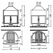 - Конструкция: Рамка из эмалированной стали, закрытый очаг, регулируемые ножкиТопка: Жаропрочное покрытие Алукер (не подходит для моделей 510-555)Кожух: Сталь. Модели 510-555 оснащены чугунной муфтой дымоходаОчаг: ЧугунПроем: Дверца из эмалированной стали с жаропрочным стеклом, выдерживающим температуру до 750°, с самообдувом. Подъемная дверца, установлена на петлях для облегчения читки. Модели 510A-555E A-555T A оснащены просто дверцами на петлях.Профиль дверцы: Модели 610-700-801-810-2010-510-555: эмалированная сталь. Модели 600-650-655-750: эмалированная сталь или, по запросу клиента, нержавеющая сталь.Ручка дверцы: Эмалированная сталь, съемная, отделка: легированный никель и силикон, в зависимости от модели.Первичный воздух: Регулируется вручнуюВторичный воздух: ФиксированныйВыход дымохода: Верхний; для моделей 510-555 верхний или заднийШиберная заслонка: Регулируется вручную. Для моделей 510-555 по запросу клиента.Зольник: ВынимаемыйТопливо: ДроваОтопление: Естественная конвекция, лучистый обогрев и дополнительная вентиляция с искусственной тягой через систему Multifuoco