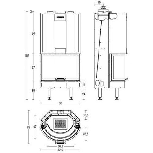 Кожух и теплообменник удерживают тепло, за счет чего оптимизируется уровень термального КПД и теплоотдачи. Очаг камина изготовлен таким образом, чтобы поступающий первичный и вторичный воздух предварительно нагревался и улучшал качество горения.