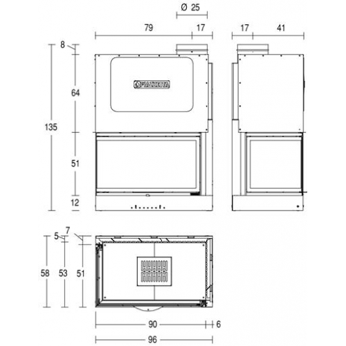 | Выход дымохода | O см | 25 |