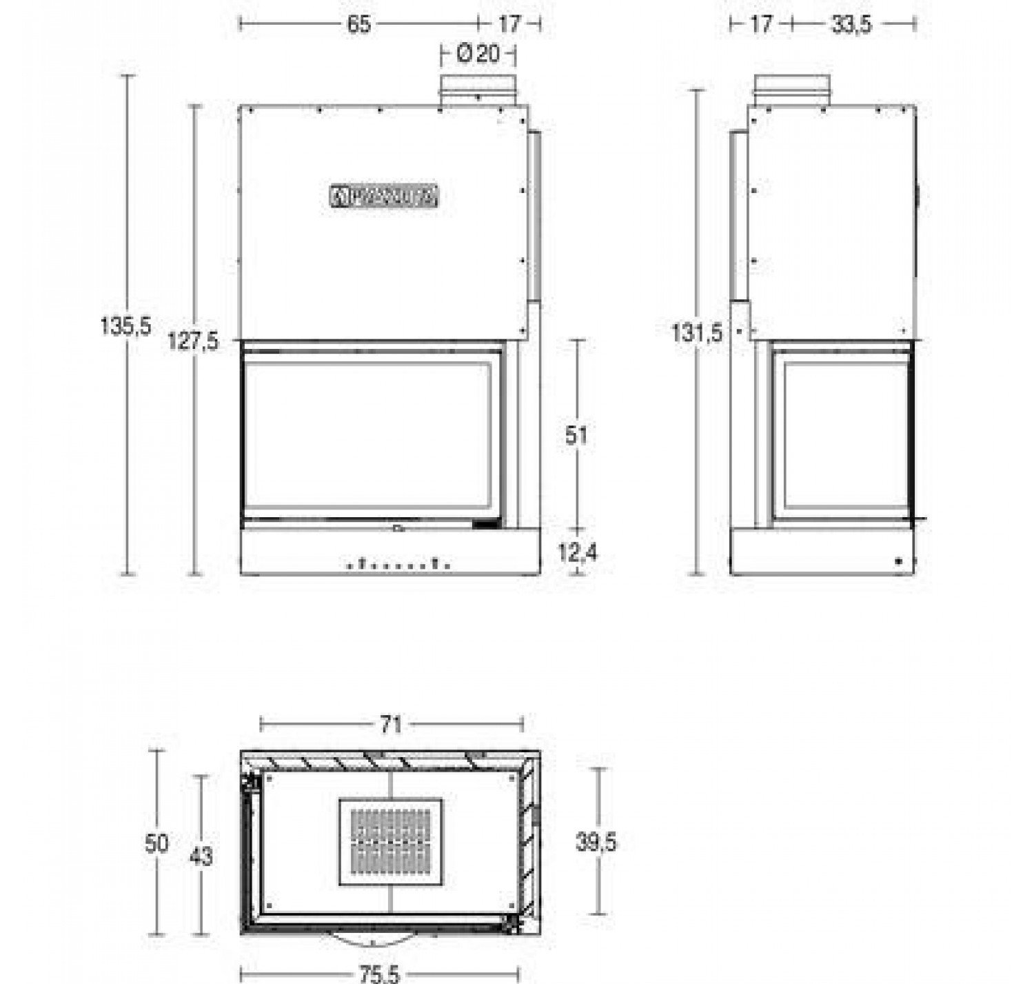 Каминная топка PIAZZETTA MA 285 SL DX произведена в Италии.