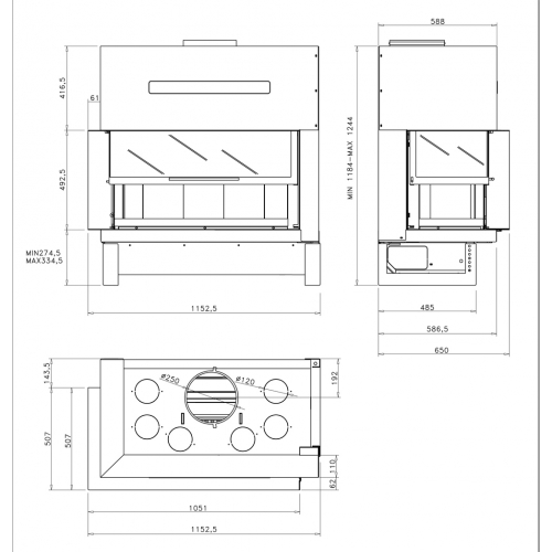 - Диаметр дымохода: 25 см