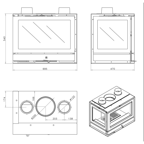- Материал: Огнеупорная сталь, вермикулит