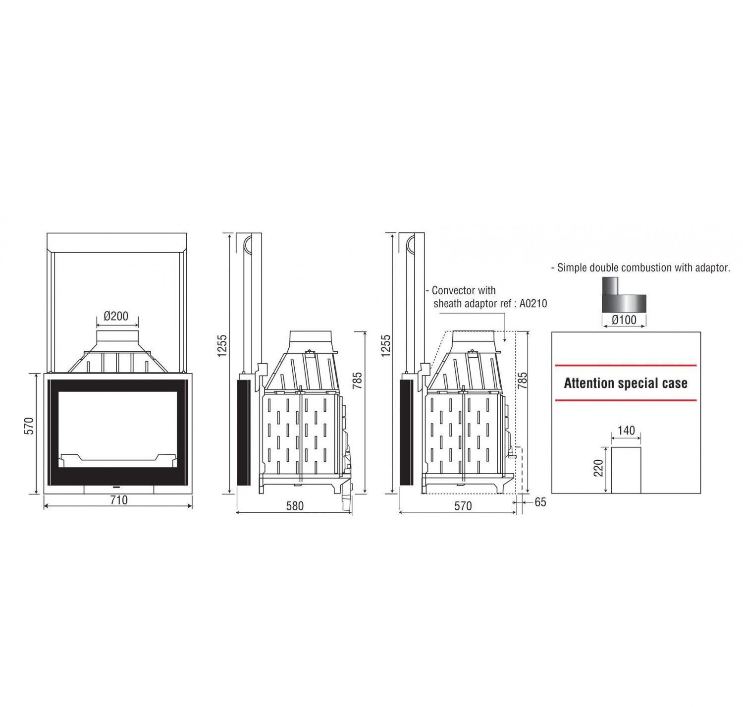 Каминная топка Seguin prestige pano 7 evolution plus - black line (с серыми кирпичами и двойной подачей воздуха)